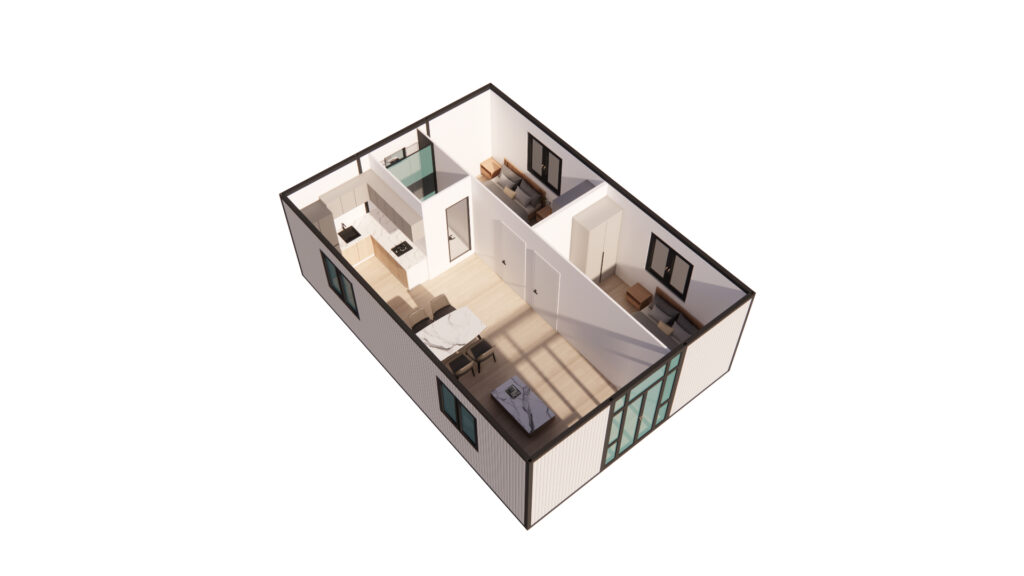 Our 54 - square - meter two - bedroom, one - bathroom folding house offers a harmonious blend of space and functionality. The two bedrooms are generously sized, providing comfortable retreats for rest and relaxation. The single bathroom, equipped with modern fixtures, ensures convenience for daily use. The open - plan living area seamlessly integrates with the dining and kitchen spaces, creating a warm and inviting atmosphere for family gatherings or entertaining guests.